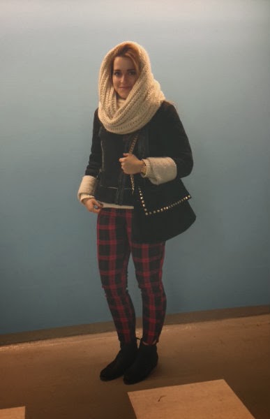 There's one shop where I can always go in and go home happy with new stuff - F&F (in worst case you can also get chocolate in Tesco, so it's always a win). So after coming home, my first steps were to this shop. And I succeeded, of course, I got this tartan pants. My pictures were taken in the evening after a going home from cinema (yes, I often get these amazing blog ideas at night when there's darkness all around me...)